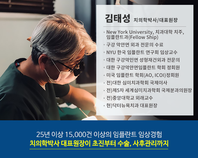김태성 대표원장은 NewYork Univ 치과대학, 치주, 임플란트과(Fellow Ship)